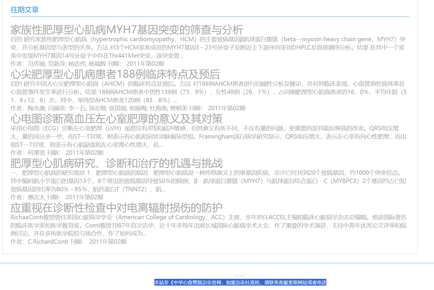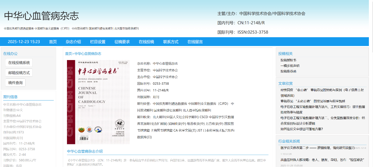 澎湃新闻注意到,该网站网址为“zhxxgb.jyqikan.com”,发布了大量关于《中华心血管病杂志》的相关信息,仅在网站下方用小字标出“本站非《中华心血管病杂志》官网,如需杂志社直投,请联系客服索取网站或者电话”。
